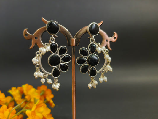 Black Magic: Oxidized Silver Earrings with Black Stones