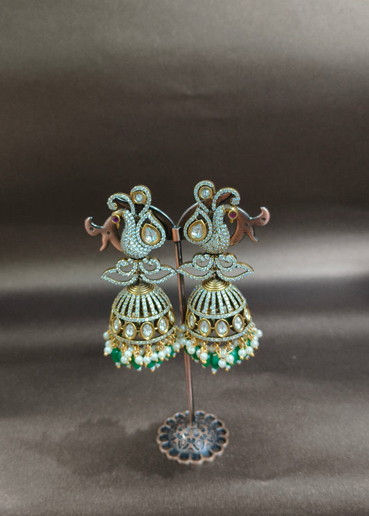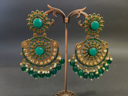 Reagan Polki Necklace Set Chandbali Earrings - Emerald Green
