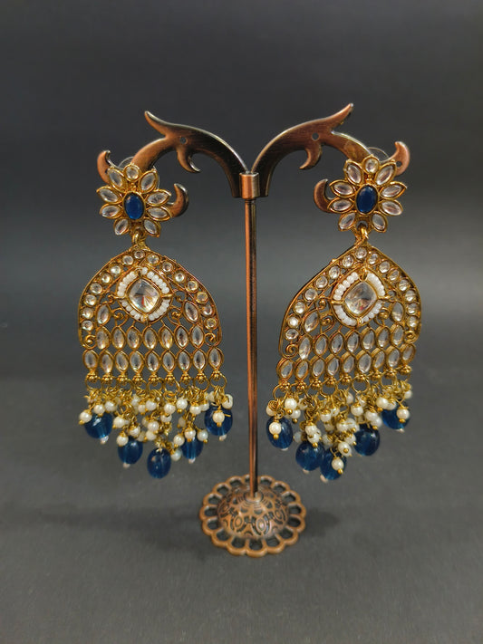 Sea Blue Kundan Necklace Set with Earrings & Maang Tikka
