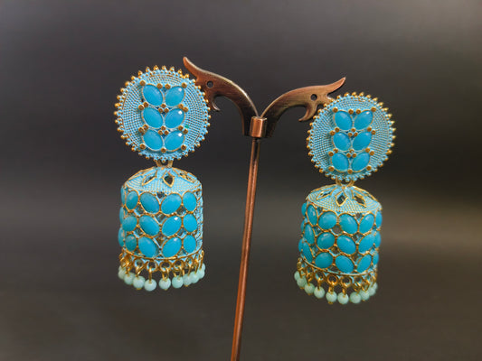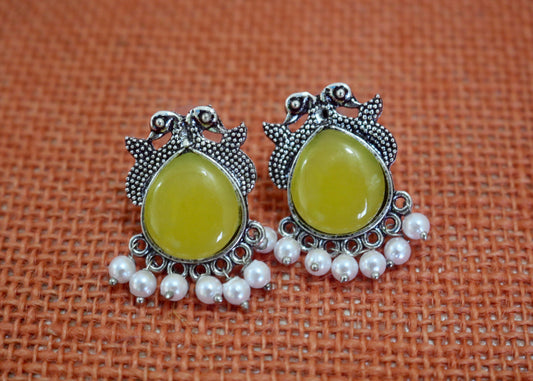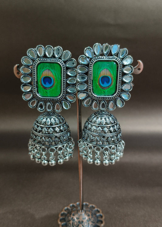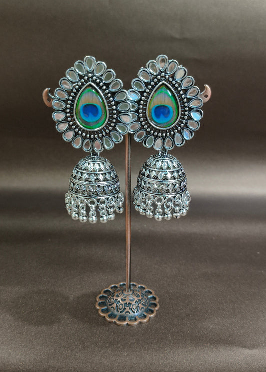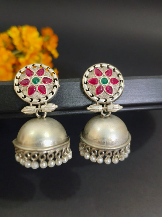 Vintage Charm: Oxidized Silver Jhumkas with Multi Colour Stonework