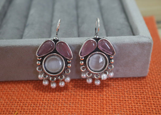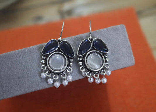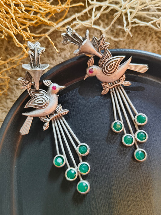 Floral Delights: Oxidized Silver Earrings with Yellow Drops