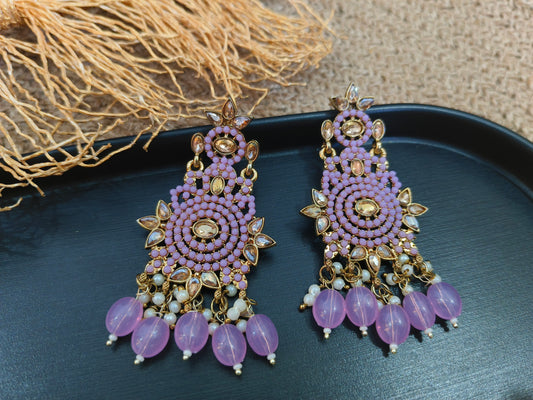 Afra Tikka Set Polki Earrings - Lavender/Lilac