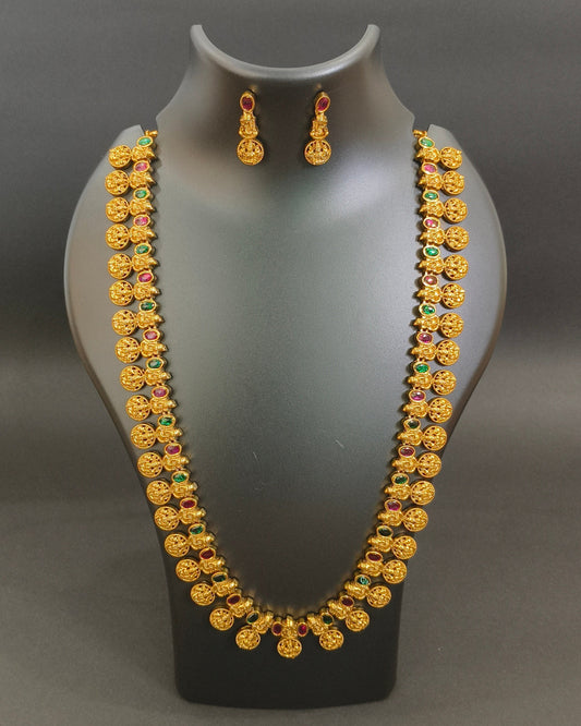 Traditional Shankari Necklace & Earrings - Matte Gold Temple Jewellery