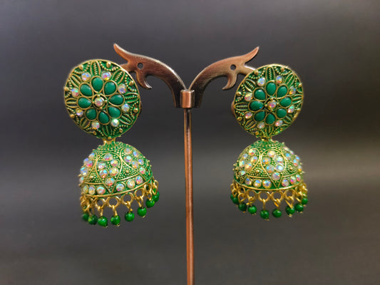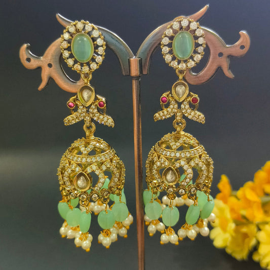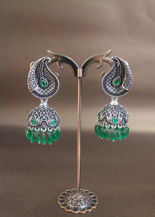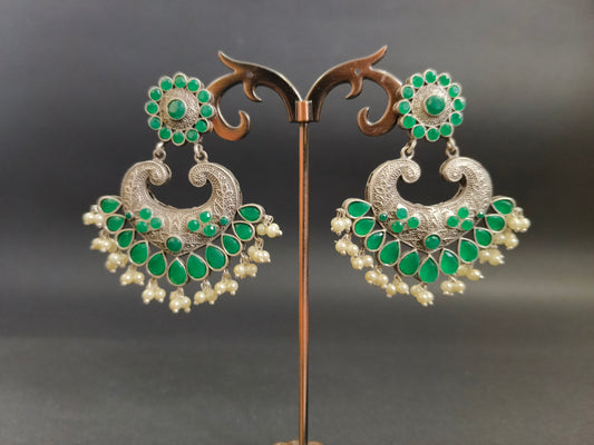 Enchanted Forest: Green Stone and Pearl Dangler Earrings