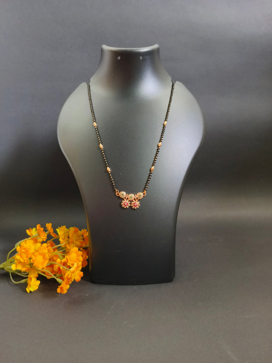 Elegant Floral Mangalsutra with Black Beads & Gold-Plated Detail