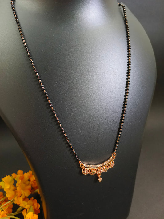 Elegant Gold-Plated AD Stone Mangalsutra with Black Beads