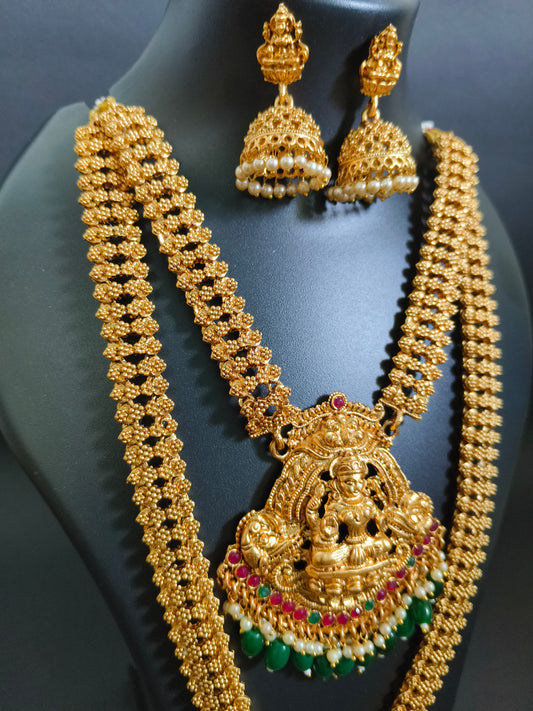Antique Lakshmi Temple Jewellery Long Haram Set