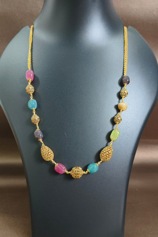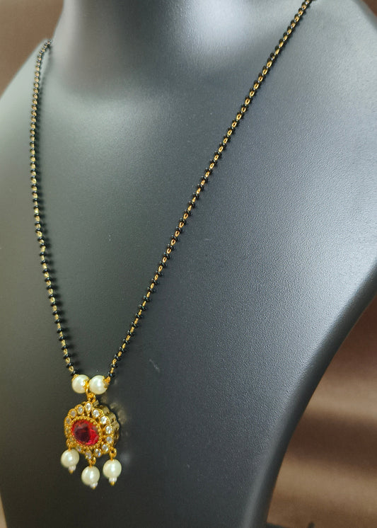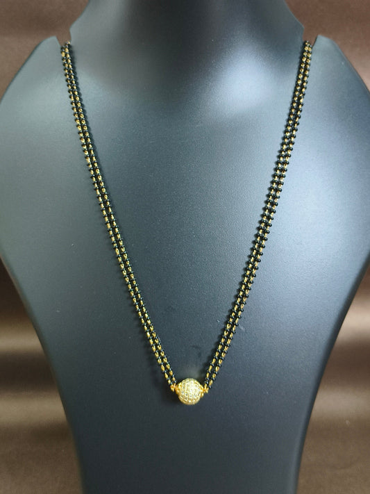 Classic Gold-Plated Mangalsutra with Black Beads and Ball Accents