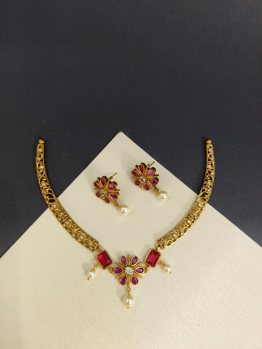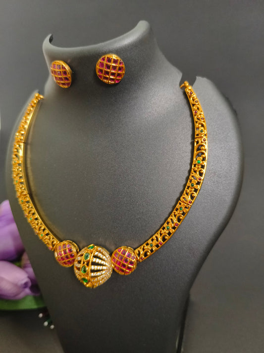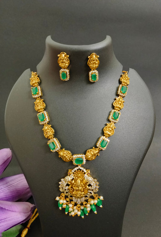 Gold Plated Designer Choker Set with Green Stones & Pearls