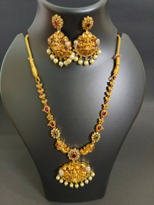 Kempu Stone Exclusive Necklace Set with Lakshmi Pendant & Jhumkas