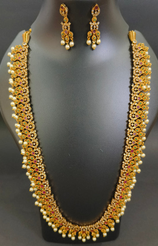 JCM Gold Plated Multicolor Jewel Set with Necklace, Earrings & Maang Tikka