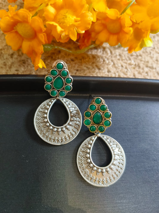 Green Teardrop Earrings with Oxidized Silver Base