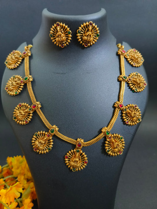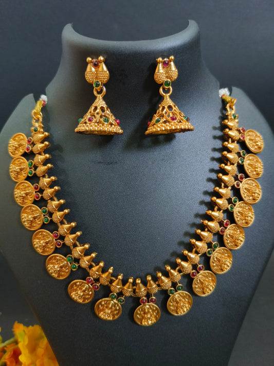Traditional Shankari Necklace & Earrings - Matte Gold Temple Jewellery