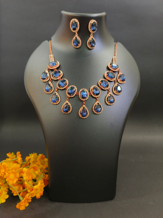 Sapphire Blue Crystal Teardrop Necklace Set - Bridal & Occasion Jewelry
