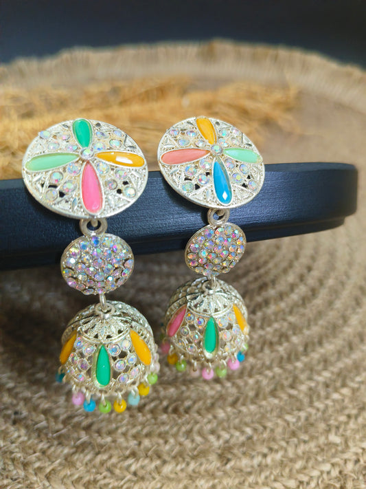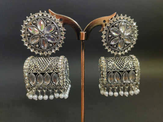 Molika Pearls Designer Oxidized Jhumka Earrings