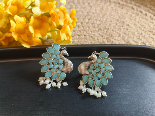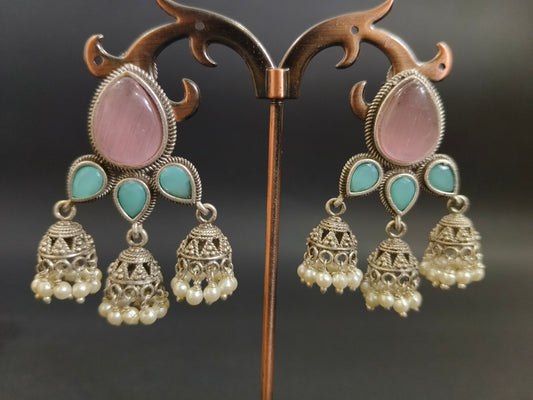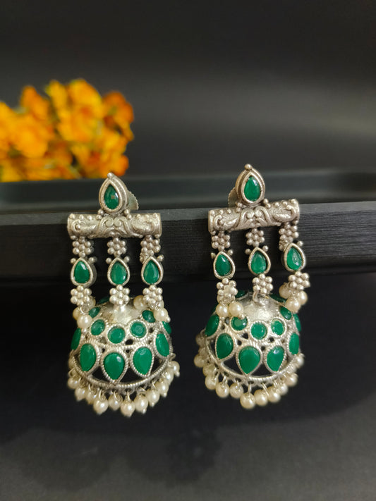 Vintage Charm: Oxidized Silver Jhumkas with Stonework