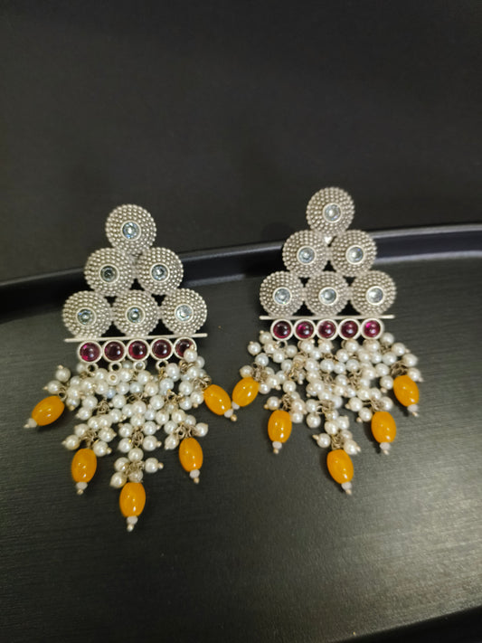 Vintage Charm: Oxidized Silver Jhumkas with Multi Colour Stonework